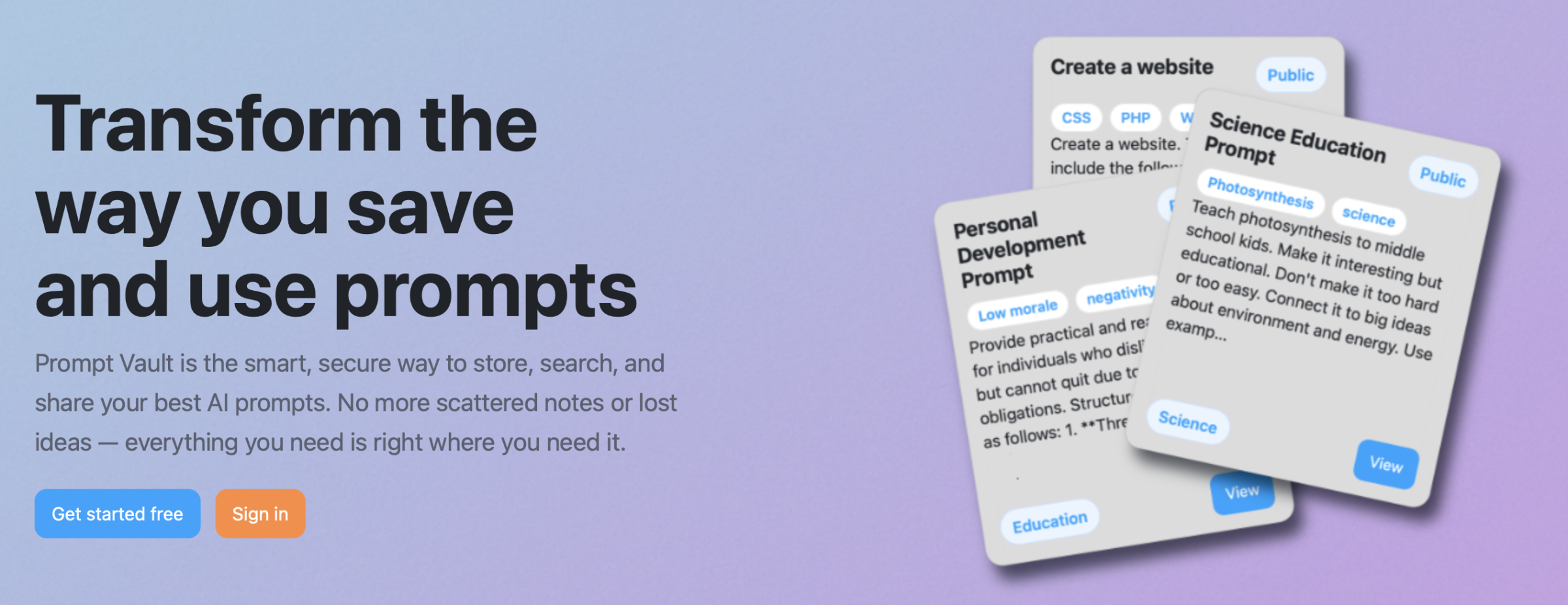 Designed with productivity in mind, it helps you turn messy, one-off prompts into reusable assets. Whether you’re crafting content, coding, writing marketing copy, or training AI personas, Prompt Vault keeps your prompts safe, standardised, and easy to reuse.