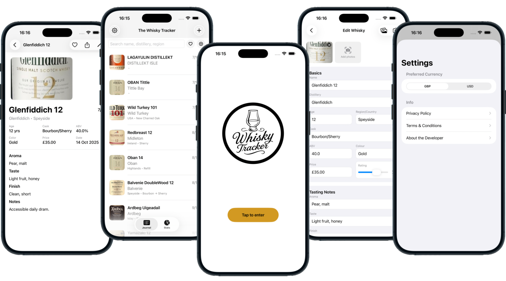 Designed with a warm, premium feel inspired by oak casks and amber tones, Whisky Tracker transforms casual tastings into a lifelong collection of moments worth remembering.